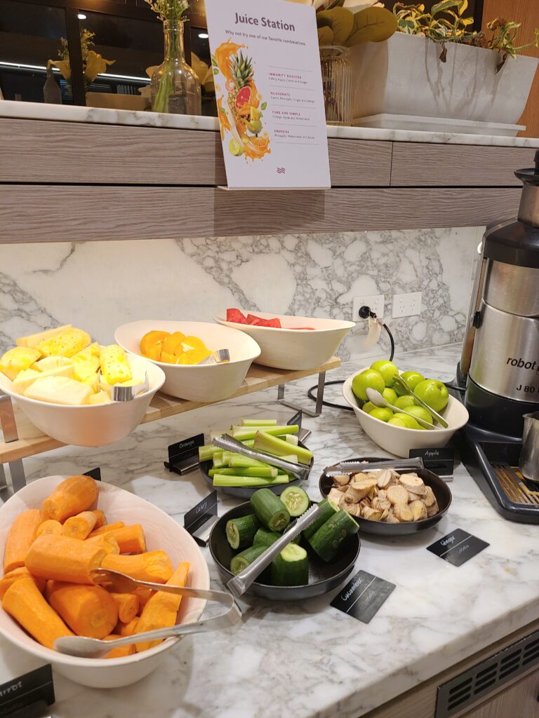 ビュッフェコーナーにジューサーが置いてあって生のフルーツや野菜でフレッシュジュースが作れました!