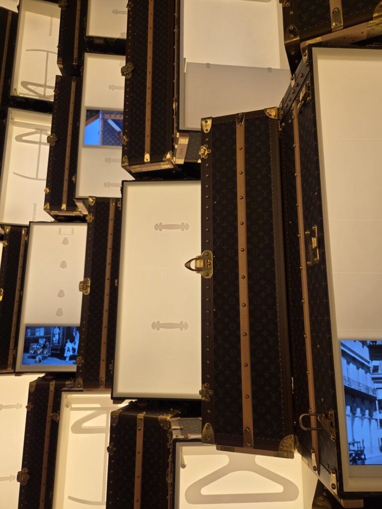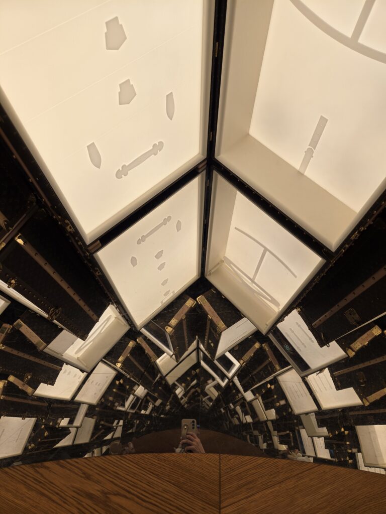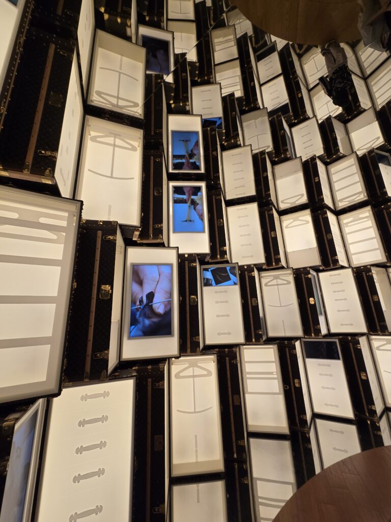 中に入ると早速ヴィトンの展示エリアが!たくさんのトランクが積み重ねられていて、その中に映像なども映し出されていてすごい光景でした!床も天井も鏡になっていたので、実際よりもすごく広く感じました!