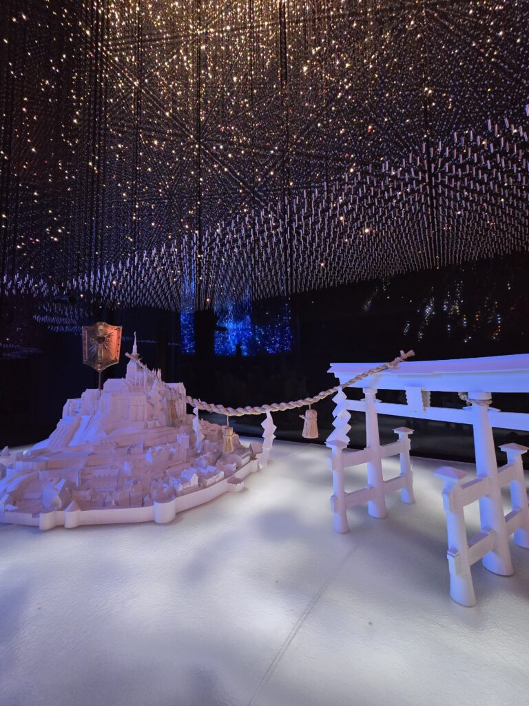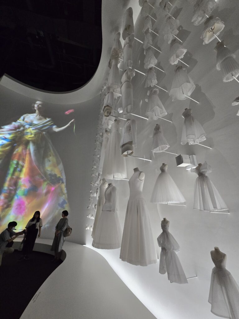 次のエリアはディオール!美術館のような、壁一面のドレスが圧巻でした!ライトがキラキラの空間には、フランスのモンサンミッシェルと日本の厳島神社の模型や首里城の模型なども展示されていました。
