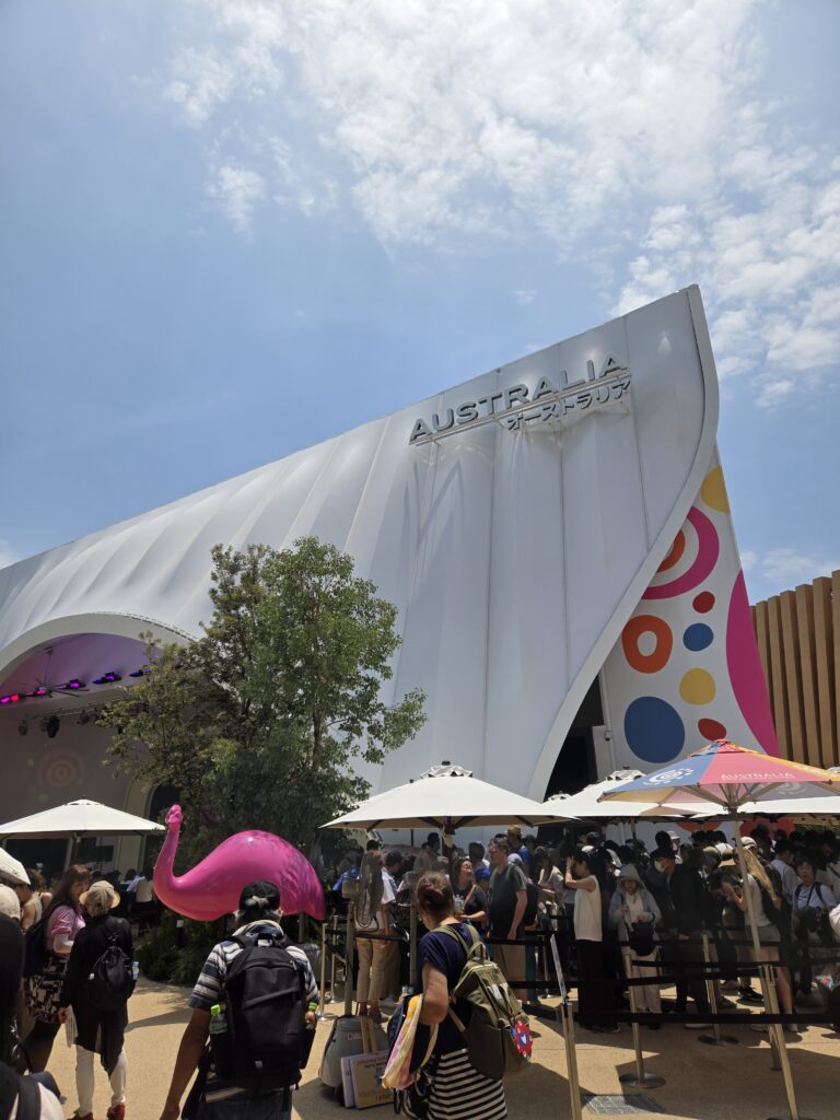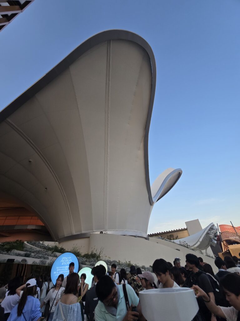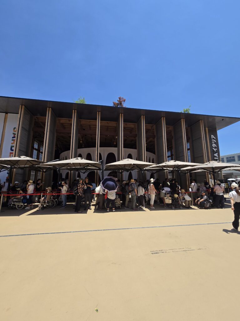 ちょうど優先レーンの案内をしていたので、何も気にせずに並んだのですが、なんと優先レーンでも2時間かかるとのこと😅その話が聞こえてきたのが既に並んでから30分以上経っていたこともあり、もともと人気のパビリオンなのでそのまま並ぶことにしました。