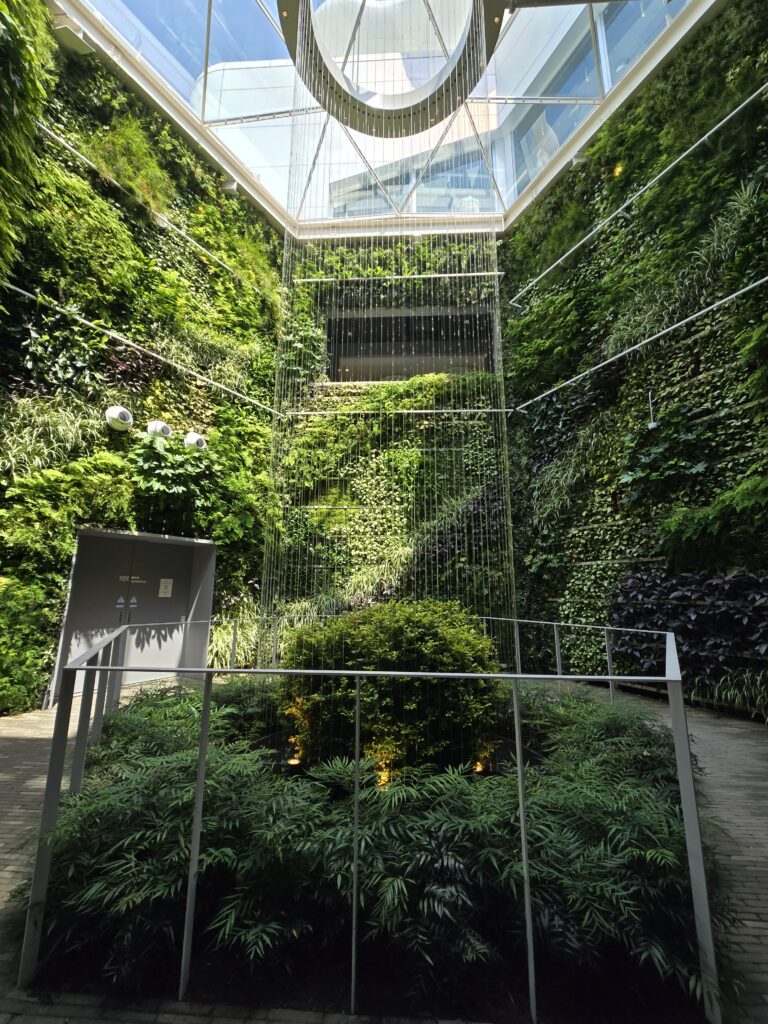 パビリオンは入ると綺麗な緑の空間に水が落ちてきていてとても神聖な雰囲気でした。