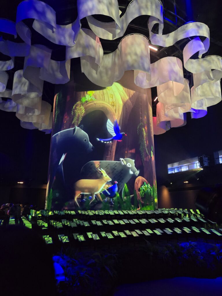 プロジェクションマッピングされた巨大な木や、本物の絵に見えるデジタルアートなどがあり綺麗でした。