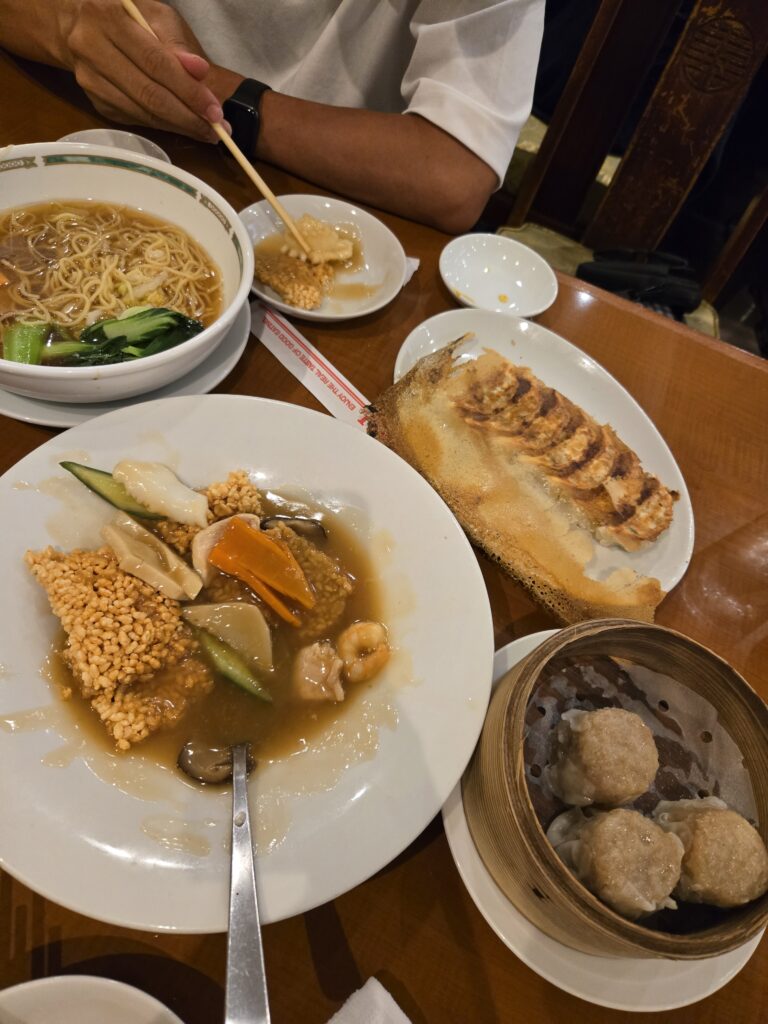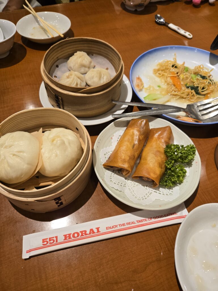 夜ご飯はホテル近くの蓬莱のレストランへ。蓬莱といえば肉まんのイメージでしたがレストランがあるなんて知りませんでした。平日だったこともあり、予約なしでも入れました。