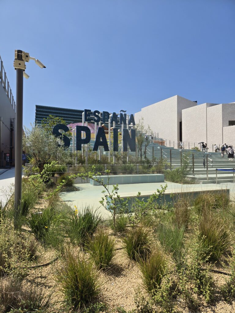 仕方ないのでサウジアラビア館は諦めて近くのスペイン館へ。既に行列ができていましたが、おそらく1周目で入れそうだったので並びました。日陰がなく、直射日光だったので、2日間でこの時間が一番暑かったです😇