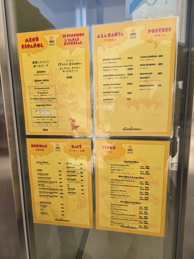 メニューは前菜とメインが選べるコース(3850円)と色々な地方のピンチョスが19種類食べられるコースの2種類があったのでどちらも1人前ずつ頼むことができたので両方を1人前ずつ頼みました!