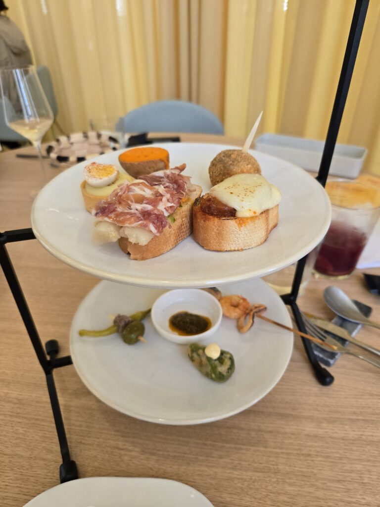 ピンチョスのコースはアフタヌーンティーみたいに出てきて、素敵でした。デザートも一口サイズだったけど食べられて大満足でした。