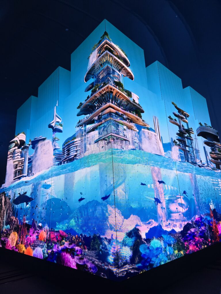 出口を出たところには人間が乗れるドローンもありました!(私が行った時はまだ運行はしていませんでした)波のプロジェクションマッピングがあったり、娘もすごく楽しそうでした。