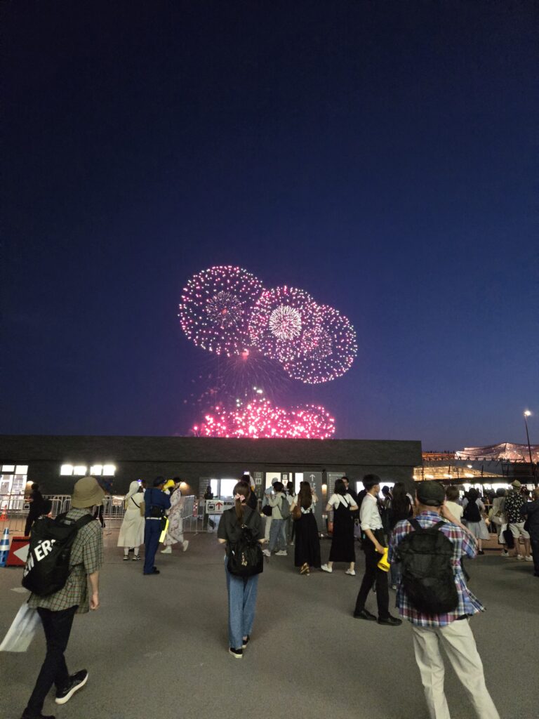 駅に着いた時にちょうど花火が始まり少しだけ見れたので良かったです。