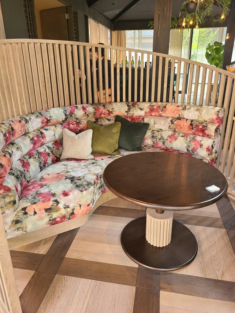 中の席はホテルの内装とは少し雰囲気が違ってラブリーな柄のソファでした😂