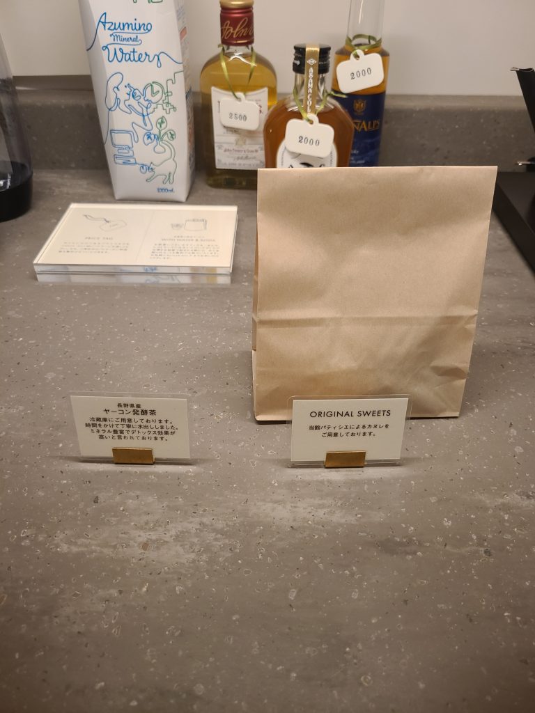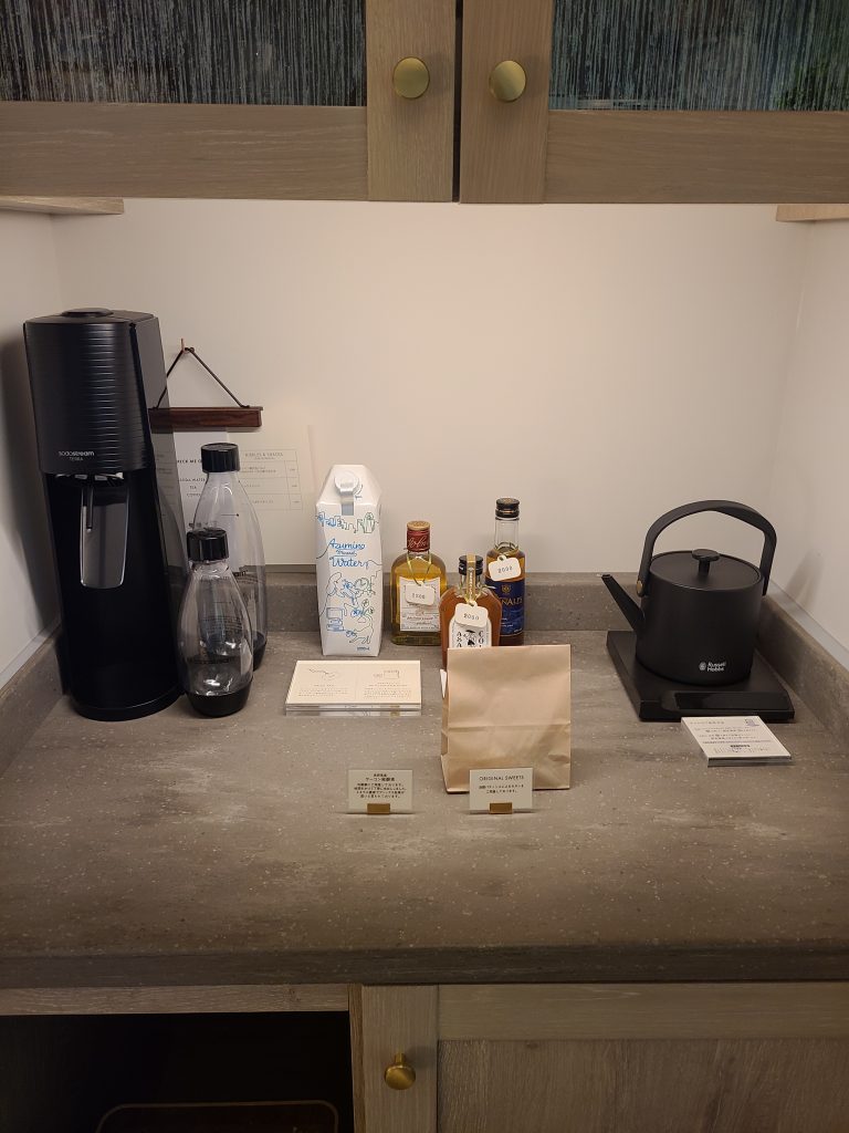ふふ軽井沢のミニバーはなんと!冷蔵庫の中の飲み物が全て追加料金無しで飲むことができます!