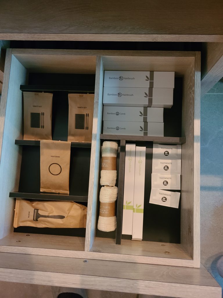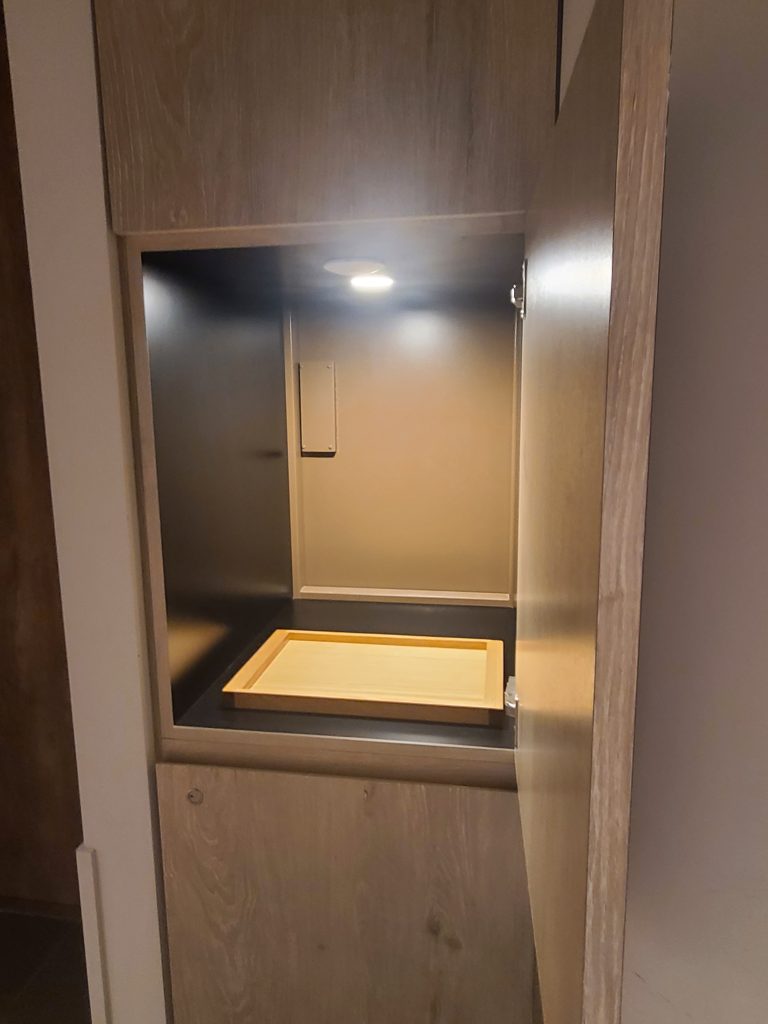 地味に便利だったのが、玄関横についているサービスボックスでここにタオルを入れておいたら新しいものと変えてくれたり、電話で依頼したスキンケアセットもここに入れておいてくれました。