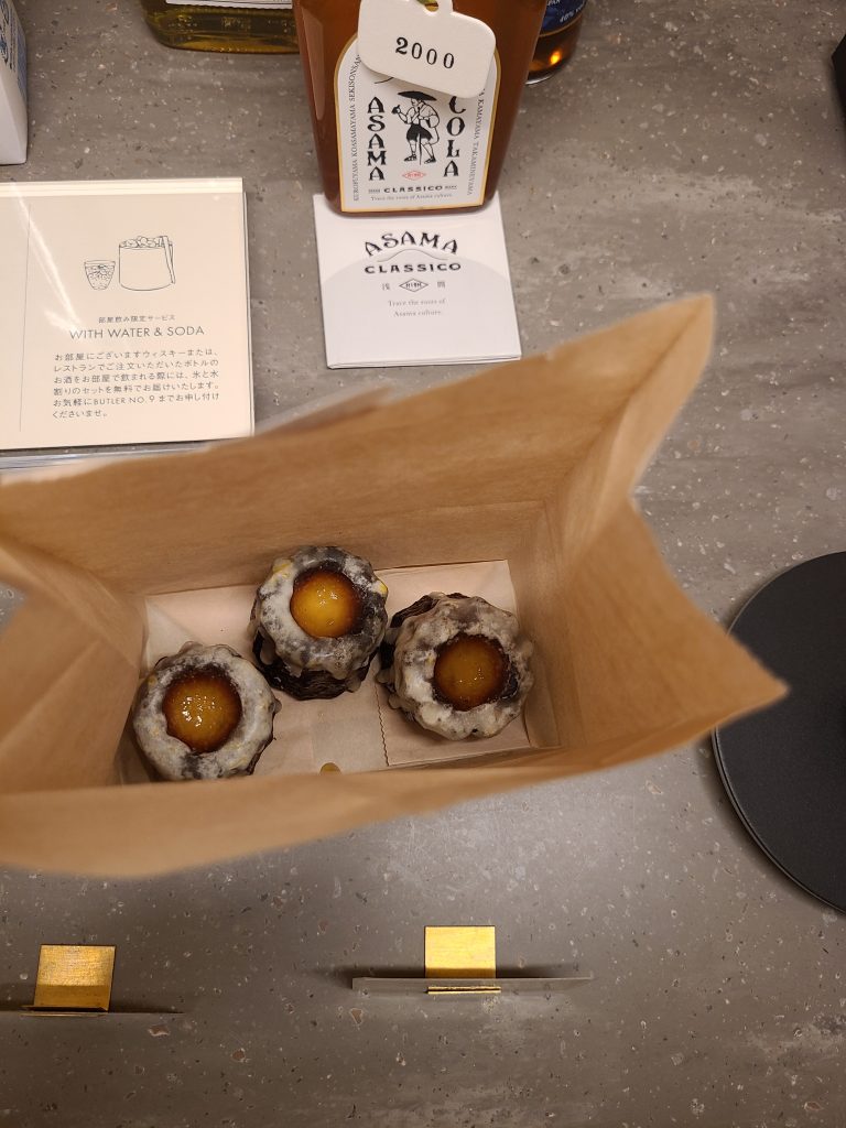棚の上にはウエルカムスイーツでカヌレが置いてありました。子供の分も合わせて3つあったのが嬉しかったです😊うちの子はまだ食べられないので、私が美味しく2個いただきました。笑