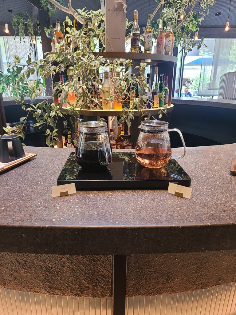 ジャグに入ったお茶はヤーコン発酵茶というお茶で、すっきりしていて美味しかったです。私はお風呂に持って行って飲みながら入りました😊