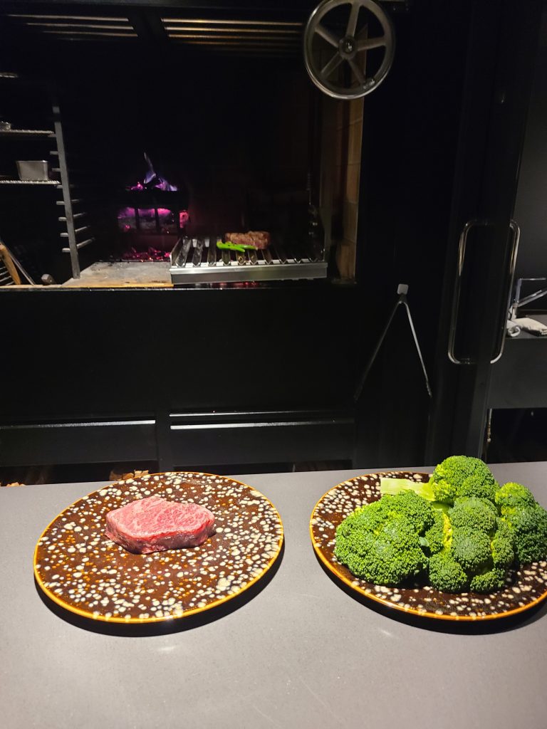 レストランの入り口に今日食べるお肉と野菜が置いてあって入り口からテンション上がりました🤤