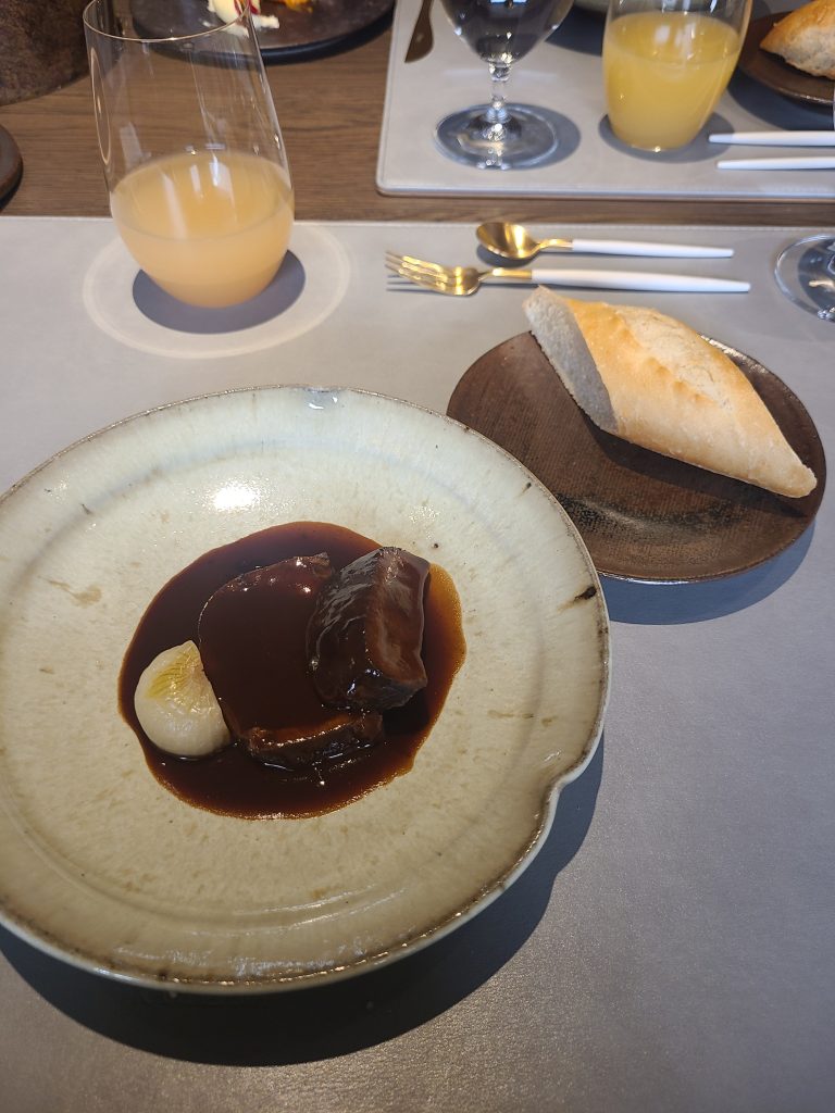 朝ご飯はメインが2種類から選べるようになっていました。私は牛タンの赤ワイン煮込みを選択。(もう一つは魚介のブイヤベースでした)