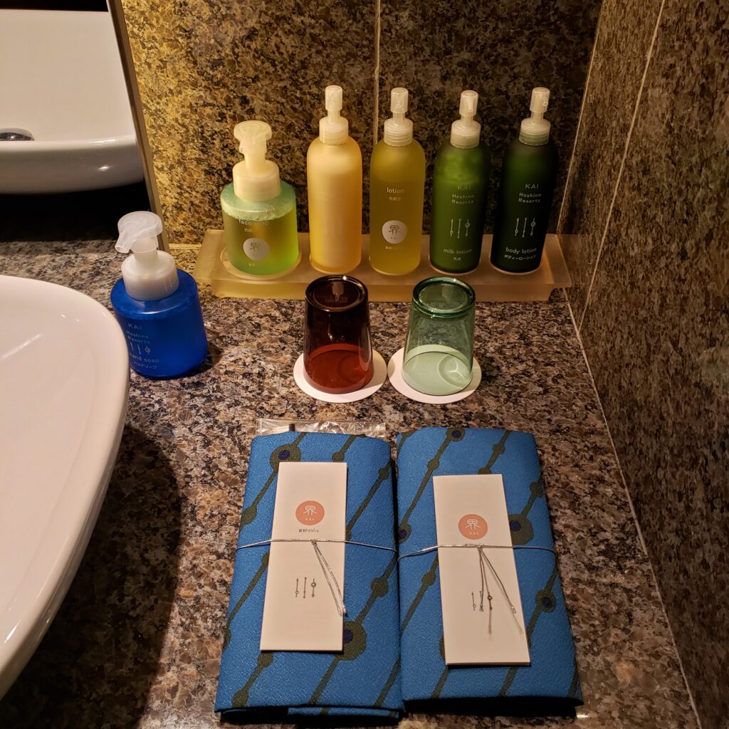 アメニティもメイク落としや化粧水など一通り揃っています。大浴場にも同じものが置いてあります。