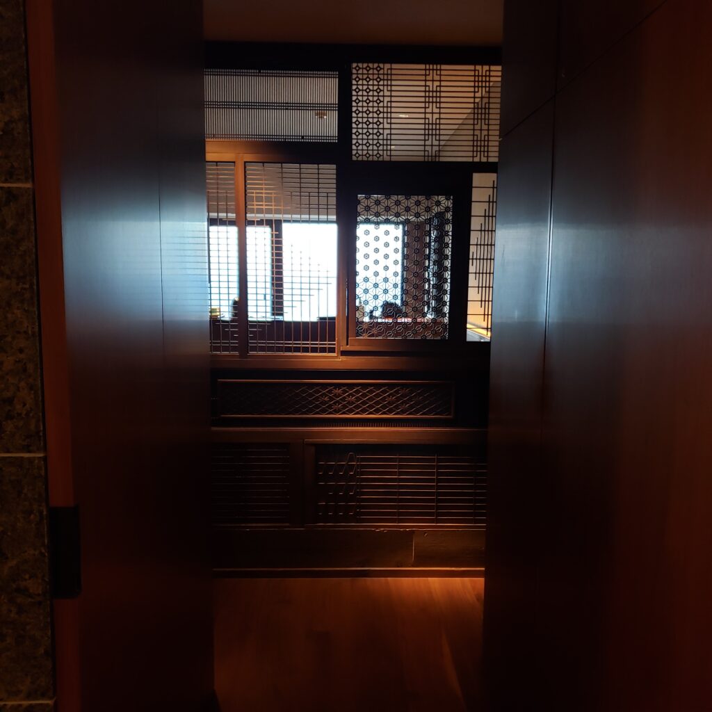写真じゃ暗くて良さが伝わりづらいですが。。。部屋に入って最初に目に入る格子が和モダンな感じでとても素敵でした!