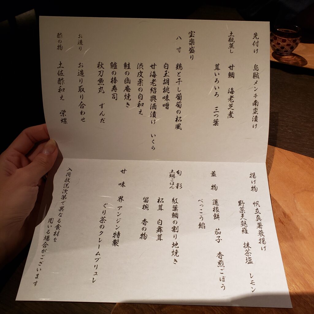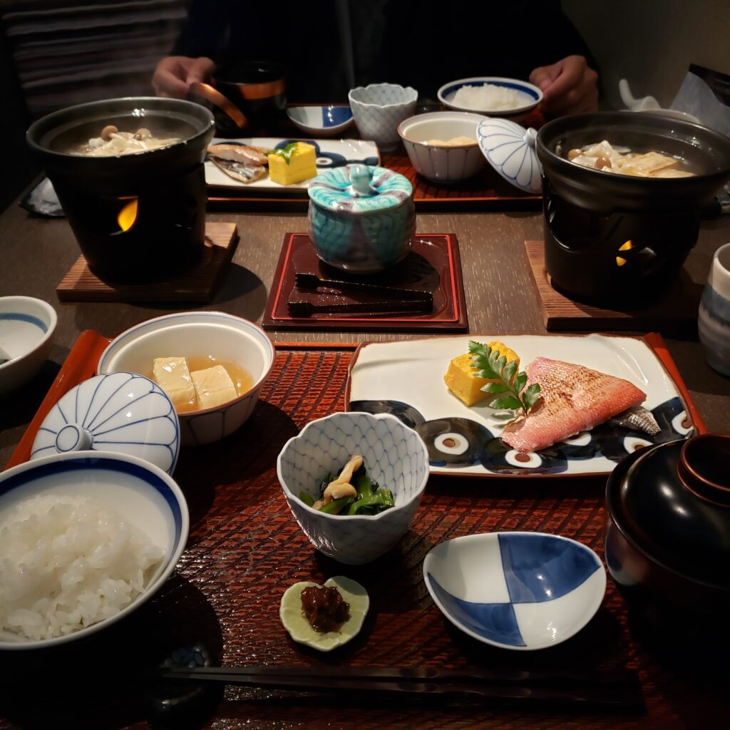 夜ご飯は半個室のお席で季節の和懐石をいただきました!