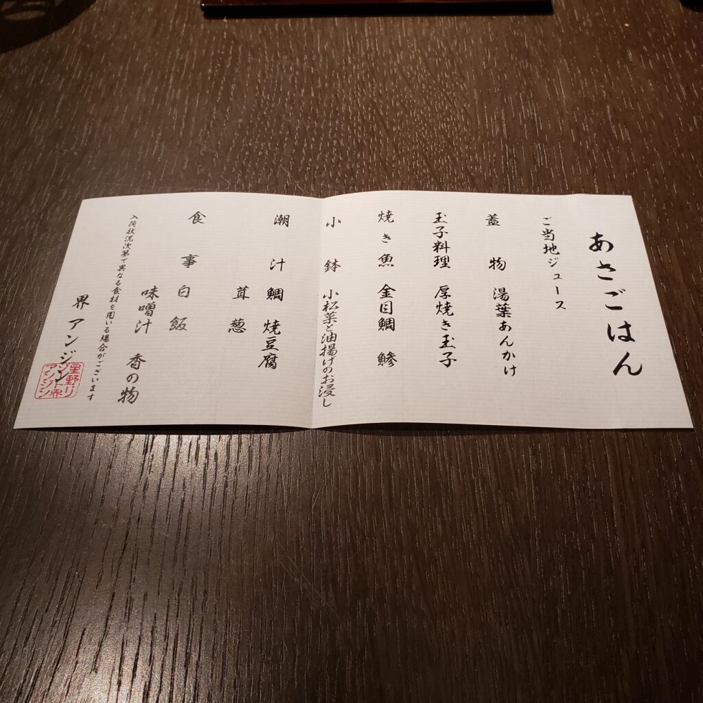 朝ご飯も夜と同じレストランで。厚焼き玉子や金目鯛など、朝からほっこりする食事で普段は朝ごはん食べないのですが旅行の時はしっかり完食します。