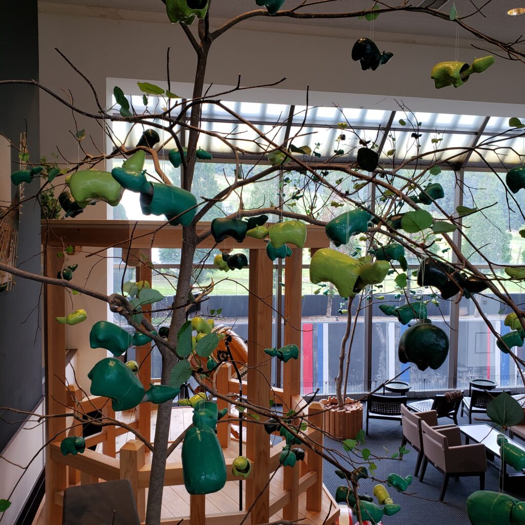 福島ということで、いたるところに赤べこがいて可愛かったです!木のオブジェもよくみると葉っぱが赤べこに!
