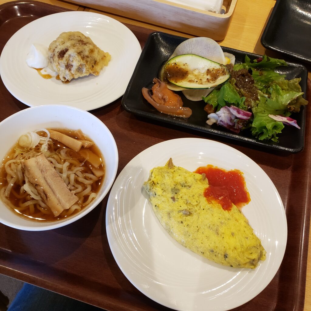 ご飯は夜も朝もビュフェでした!お肉に天ぷらにと色々充実していました!天ぷらおかわりしました。笑