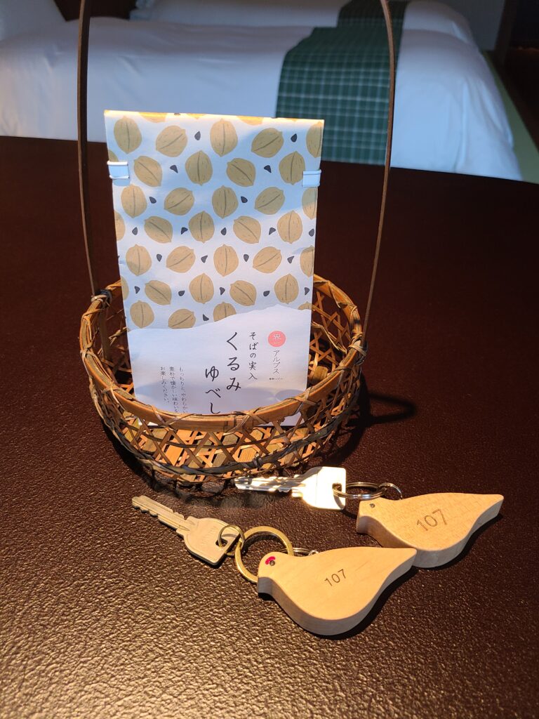 鍵には小鳥のキーホルダーが付いていました。界はカードキーではなく、鍵でその土地に沿ったキーホルダーが付いているので、それも楽しみの一つですね。