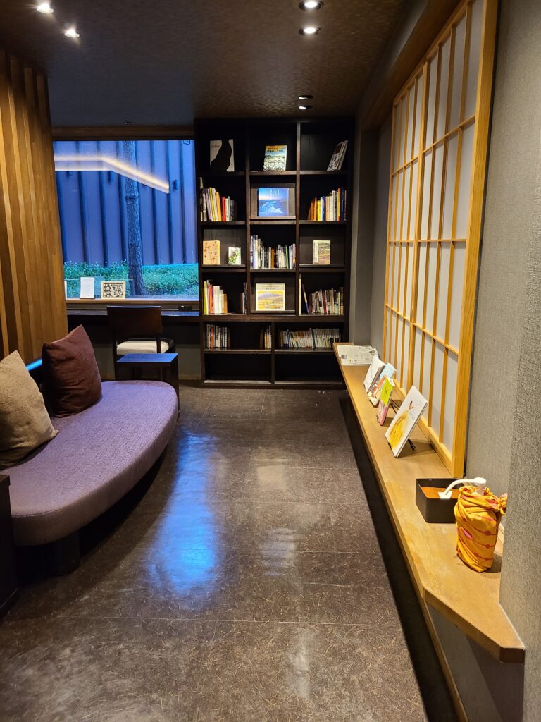 フロントの隣にあるトラベルライブラリーは24時間いつでも利用可能となっていて、フリードリンクになっています。