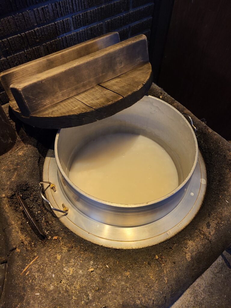 1杯だけのつもりが、囲炉裏を管理してくれているちょっと無愛想だけど優しいおじさんが空になりそうになるとすぐにおかわりをくれるのでたくさん飲んでしまいます。笑