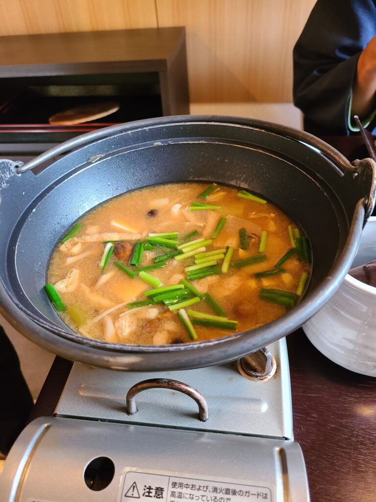 お味噌汁はお鍋で運ばれてくるので熱々のままいただけます。