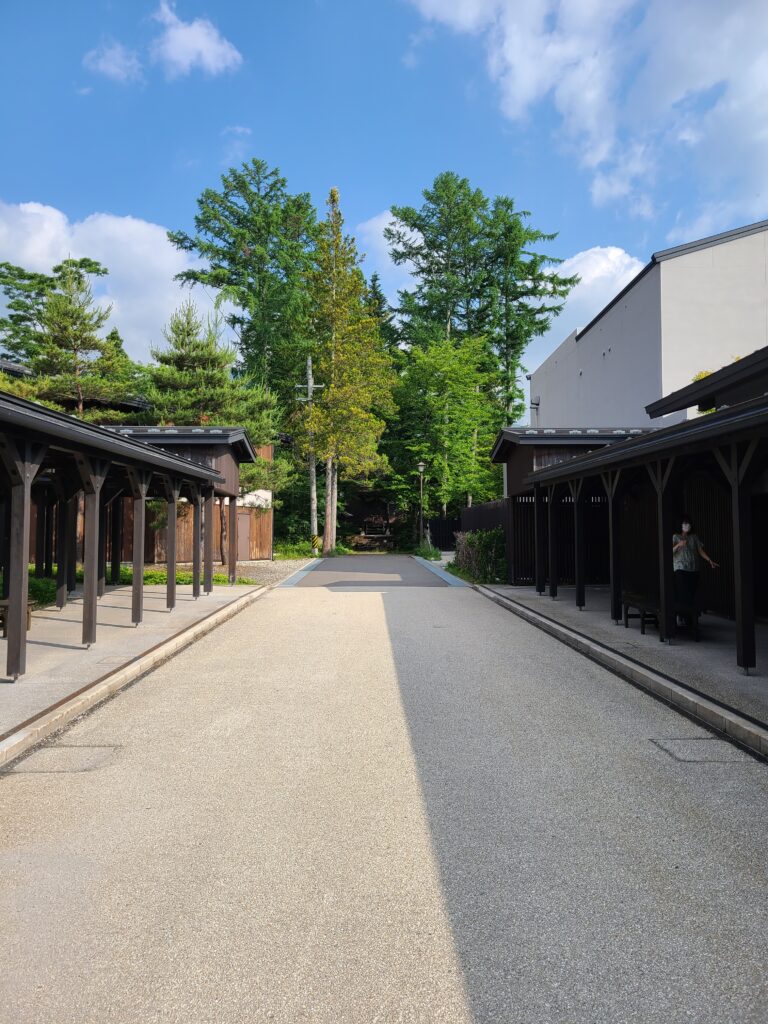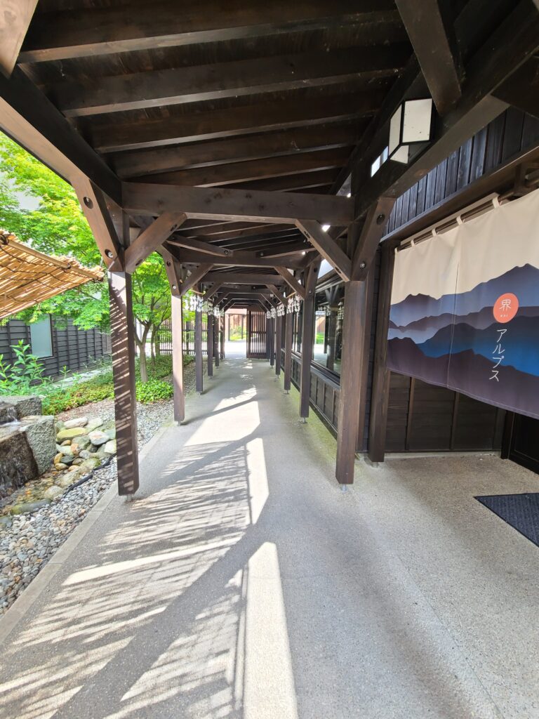 界アルプスはフロント・食事処・温泉・客室と建物が分かれていて、ちょっとした集落みたいになっています。
