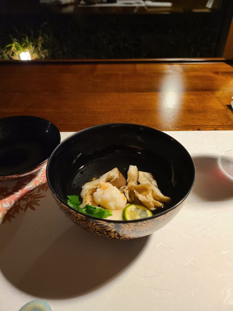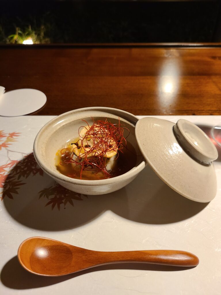 先付は牛肉とらっきょうのタルタルにとちおとめドレッシングでした!牛肉にイチゴって合うのか。。。?とちょっと不安でしたが甘酸っぱくてすごく美味しかったです!