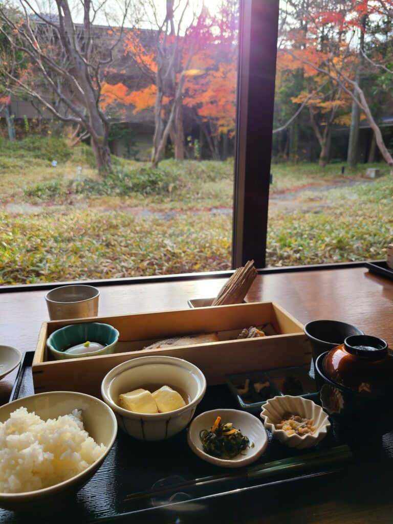 ちょうど朝日が見える席で紅葉も眺めながら素敵な朝食