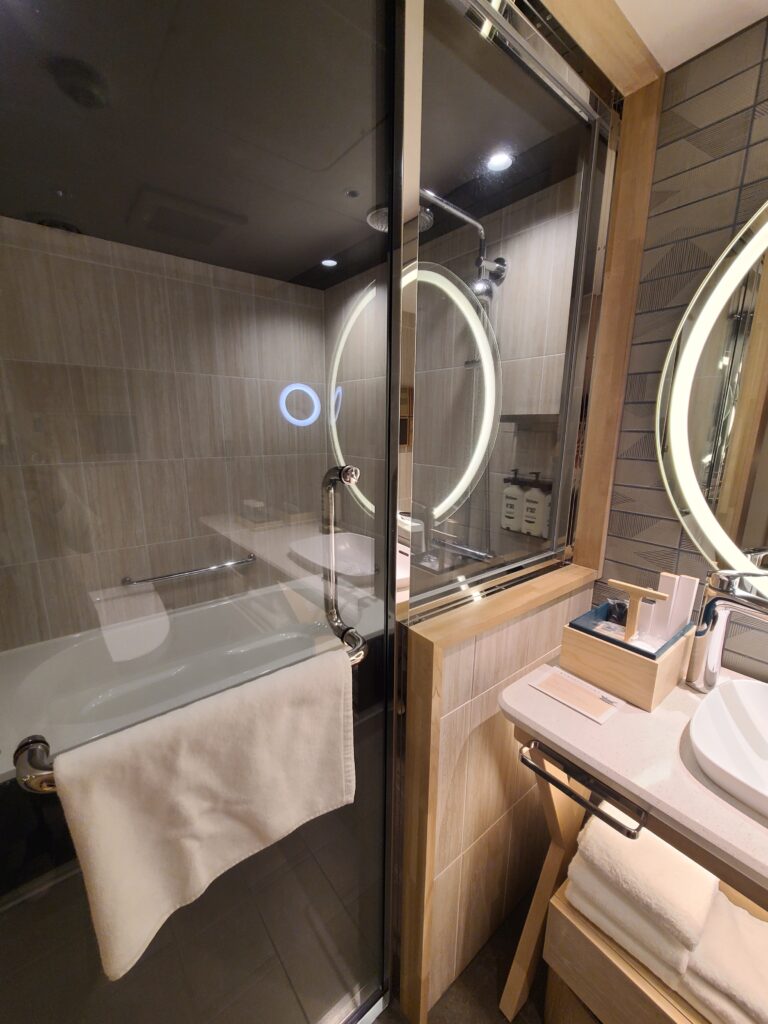 バスルームも広くて綺麗でした!浴槽もあるので赤ちゃんと一緒に入ることもできますね。