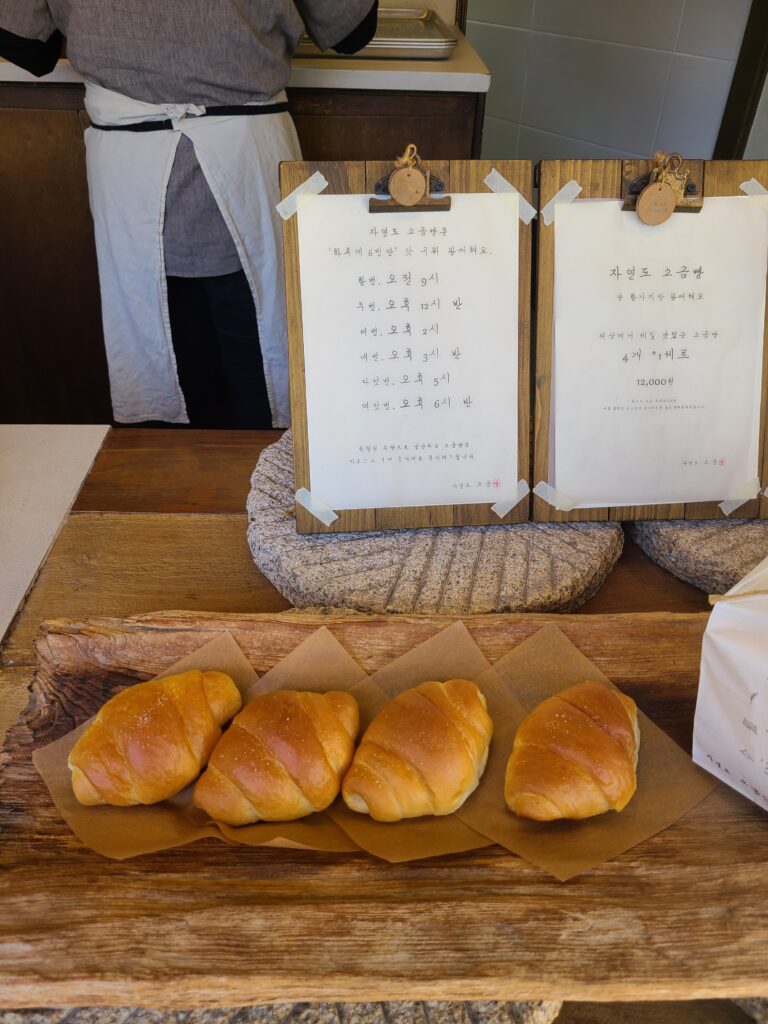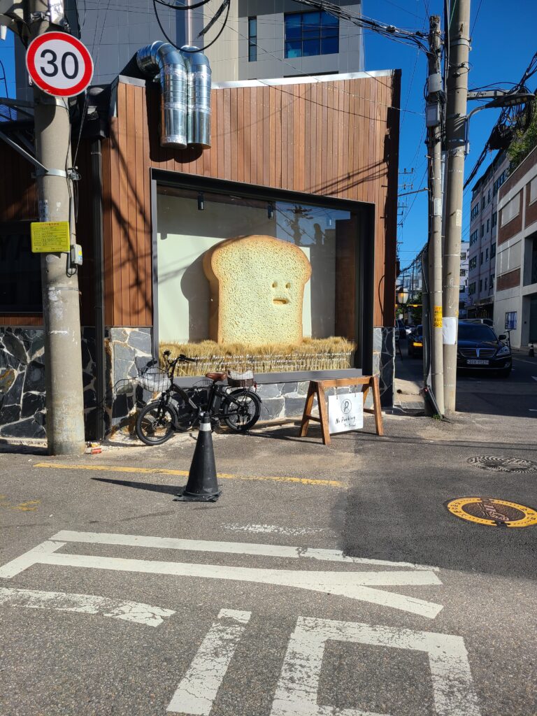 いく途中にいつも行列で人気と噂の塩パン屋さん紫燕島ソグムパン があったよ。焼き上がり時間の間だったので誰も並んでいなかったです。