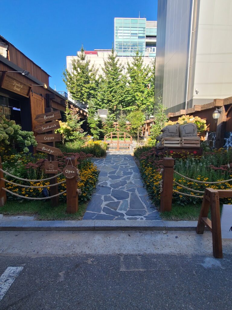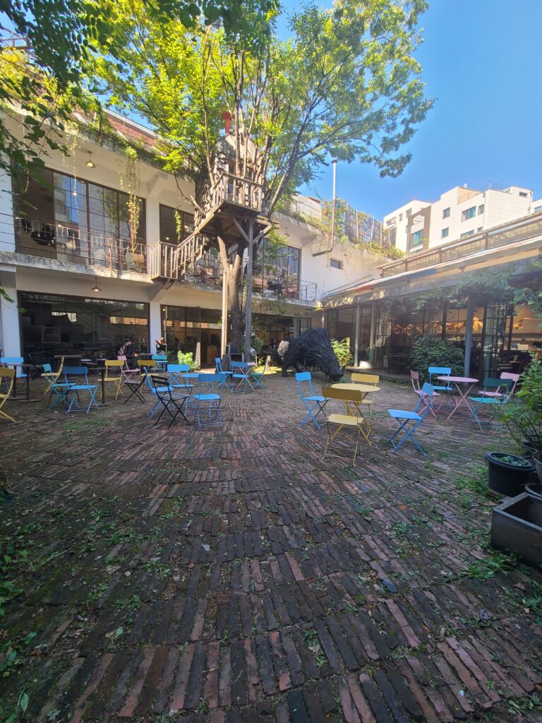 ちょっと疲れたのでfweeの近くにあったカフェ、ハラボジ工場に行きました。(今は閉店してしまったようです。)お庭が広くて平日だからか空いていたので子供を歩かせることができてよかったです。ツリーハウスもありました。