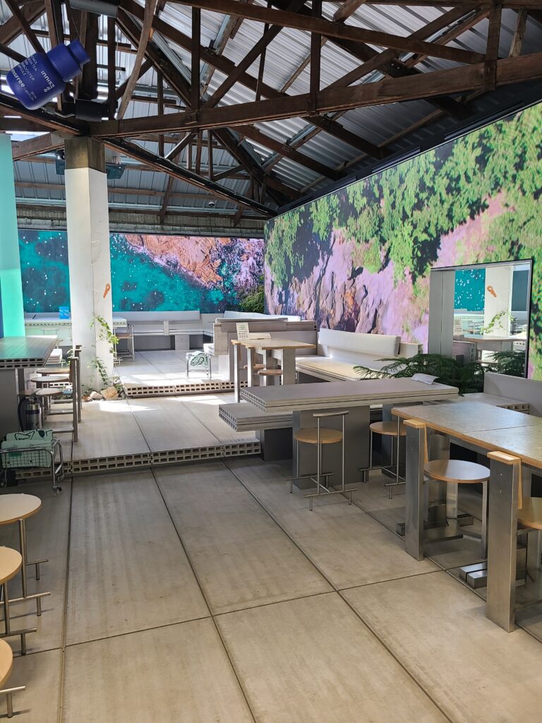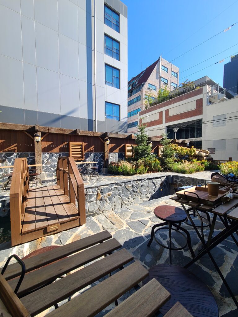 テラスには水が流れていて、橋もかかっていて、周りは古い建物や倉庫などが多いのですが、ここだけ別世界で可愛かったです。
