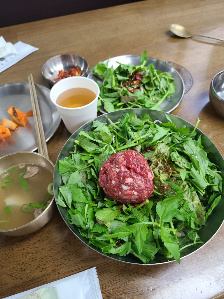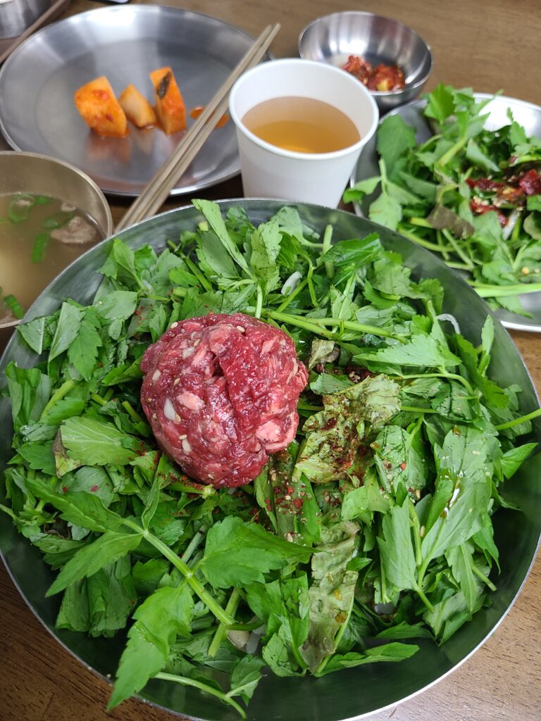 ユッケビビンバは味付けがとても美味しかったです!ミナリは私には多すぎたので、少し残してしまいました。