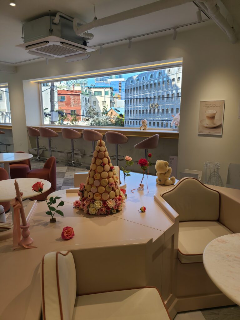 2階はカフェになっていて、内装もスイーツも可愛かったー!窓側の席だとDiorが見えるよ。