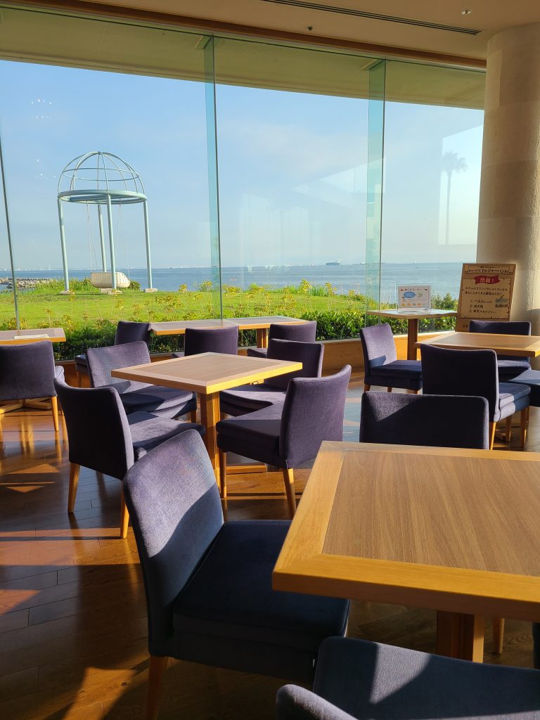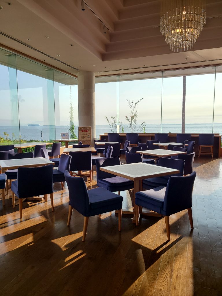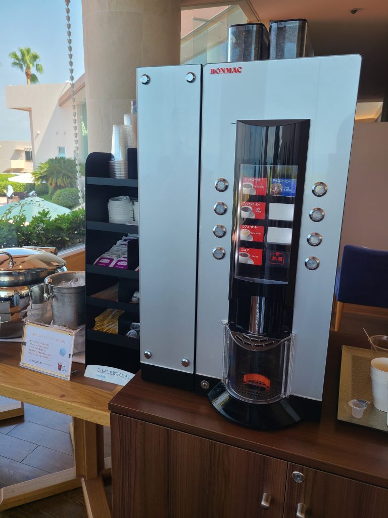 コーヒー、ジュース、スープ飲み放題のオーシャンビューラウンジ