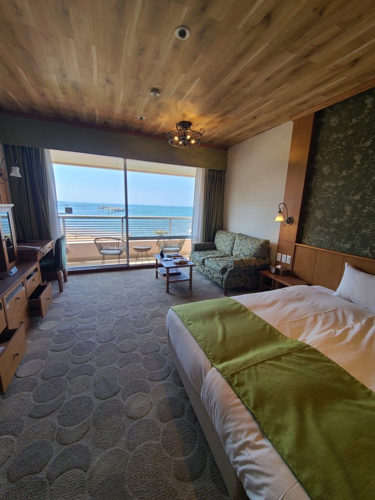お部屋はオーシャンビューで部屋に入った瞬間海が見えるので、すごくテンションあがりました!