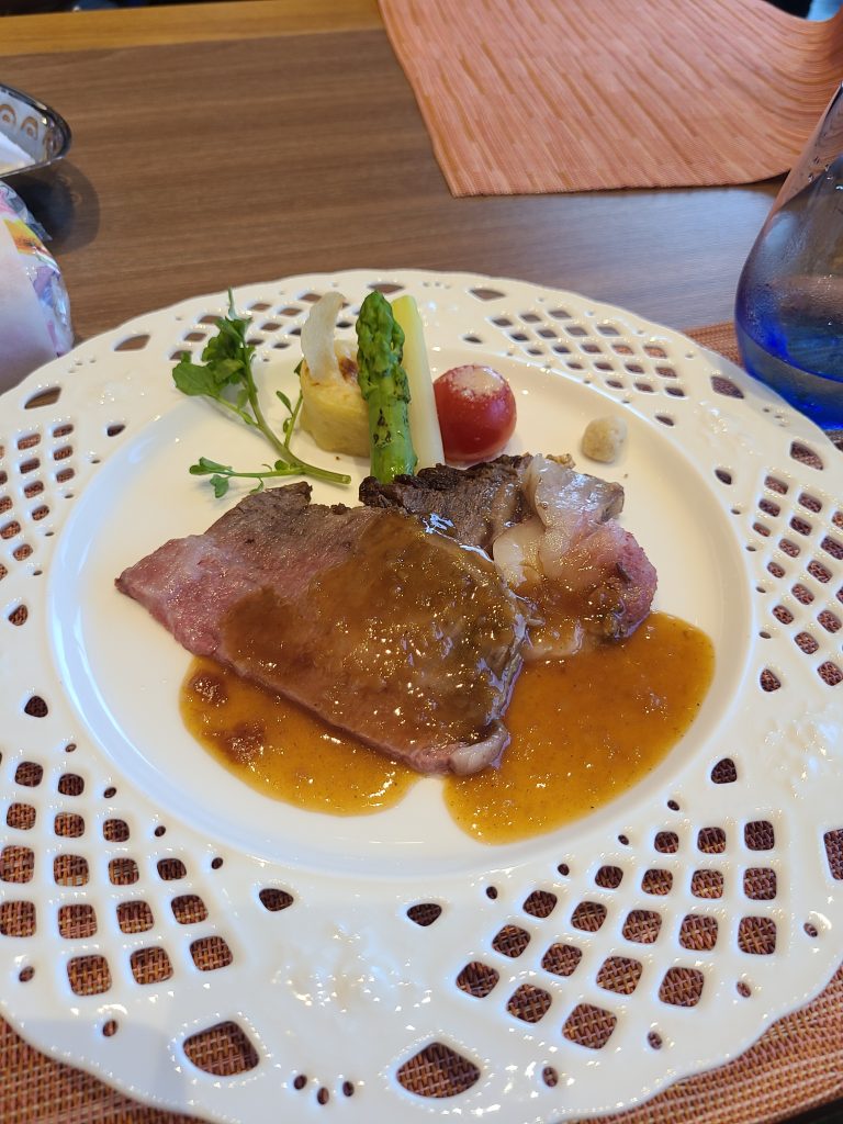 夜ご飯はコース料理でした!2交代制で17:30からと確か20:00?からの回があったので、私達は17:30からにしましたが、17:30からの回はほとんどが子連れで寝ちゃってる子とかちょっとぐずってる子とかいたので、あまり周りに気を使わなくてよくて子連れには良かったです!