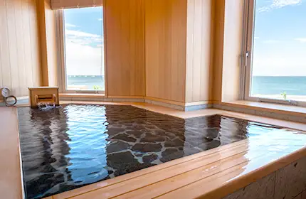 夜だから見えなかったけどオーシャンビューの露天風呂もあり、岩盤浴も入り放題です。