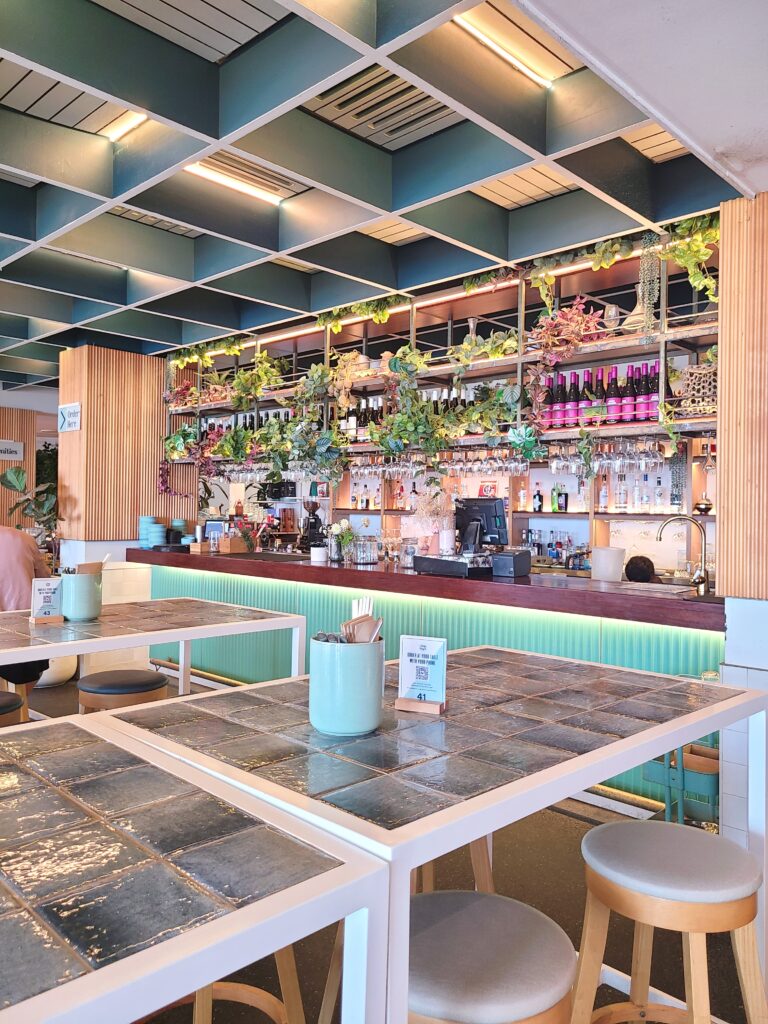 ビーチでは足をつけただけで泳ぎはしなかったので、暑くて汗だくでした。なので、帰る前に行く途中に見かけたおしゃれなバーで一旦休憩。
