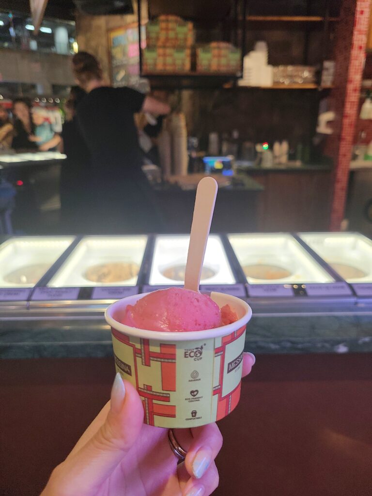 ホテルからフェリー乗り場までは徒歩3分くらいだったのですが、その日の気温が37℃で暑さに耐えられず、途中にあったアイス屋さんで早速ジェラートを食べました。