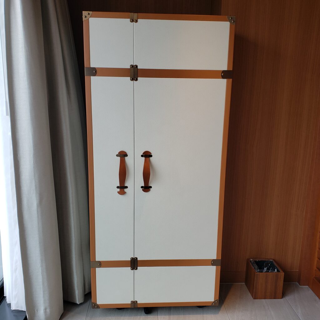 ミニバーがトランクみたいなデザインで可愛かったです!お酒などは有料だったけど、引き出しの中のジュースやお菓子は無料だったので余ったものは持って帰りました。