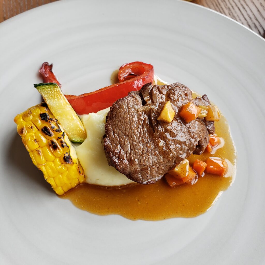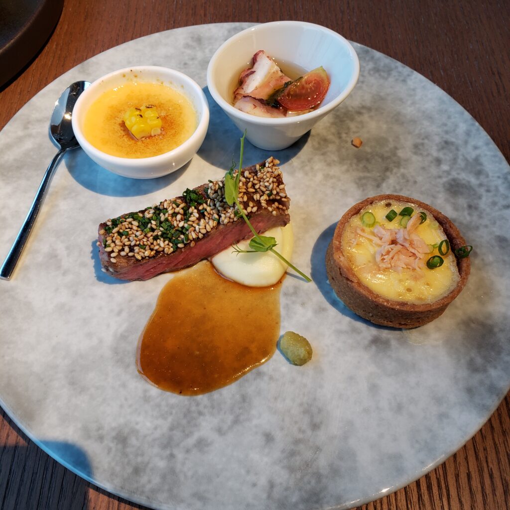 前菜も前日とはメニューが変わっていて、メインもこの日は牛肉のローストでした。