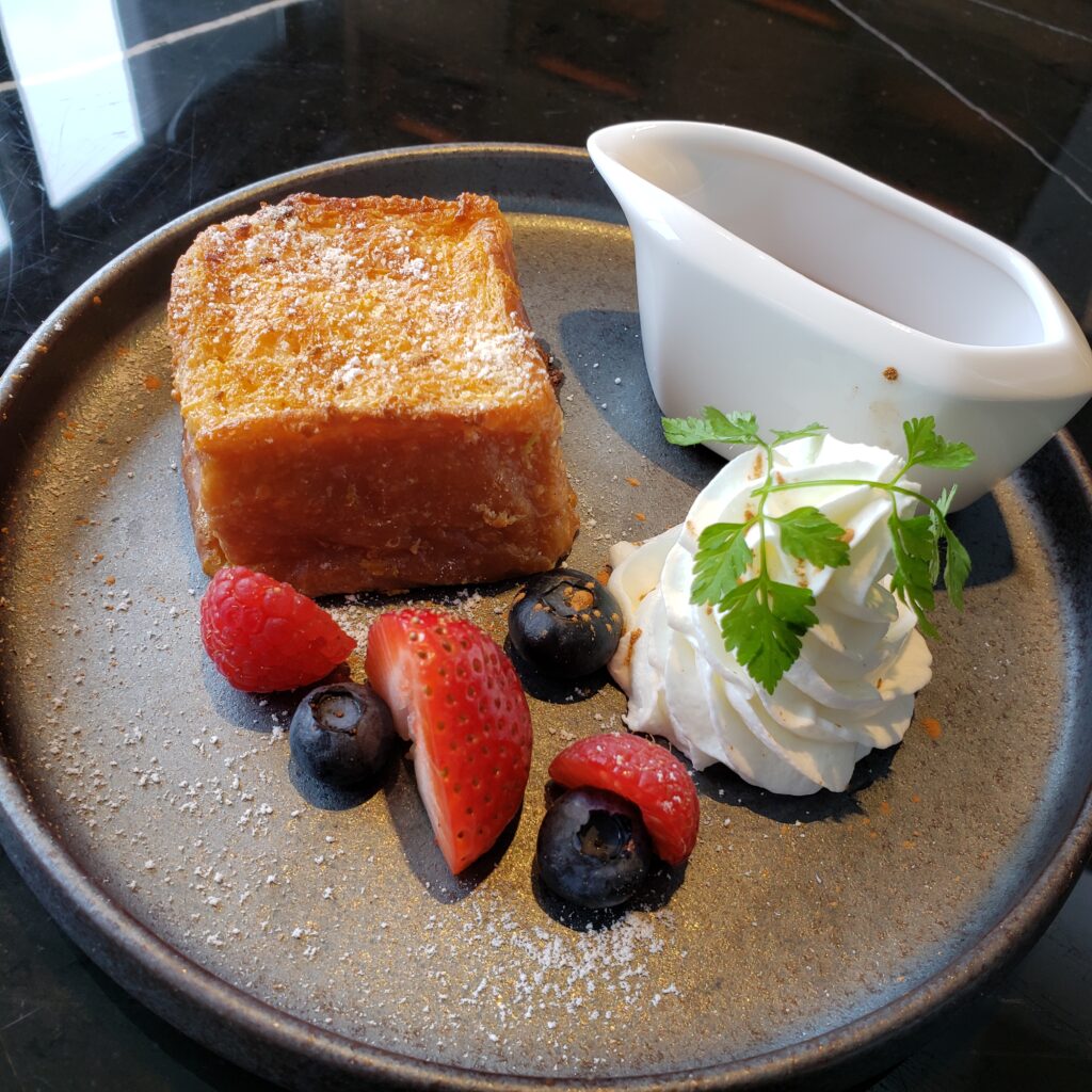エッグベネティクトとフレンチトースト、朝食にもあったステーキが食べられました!