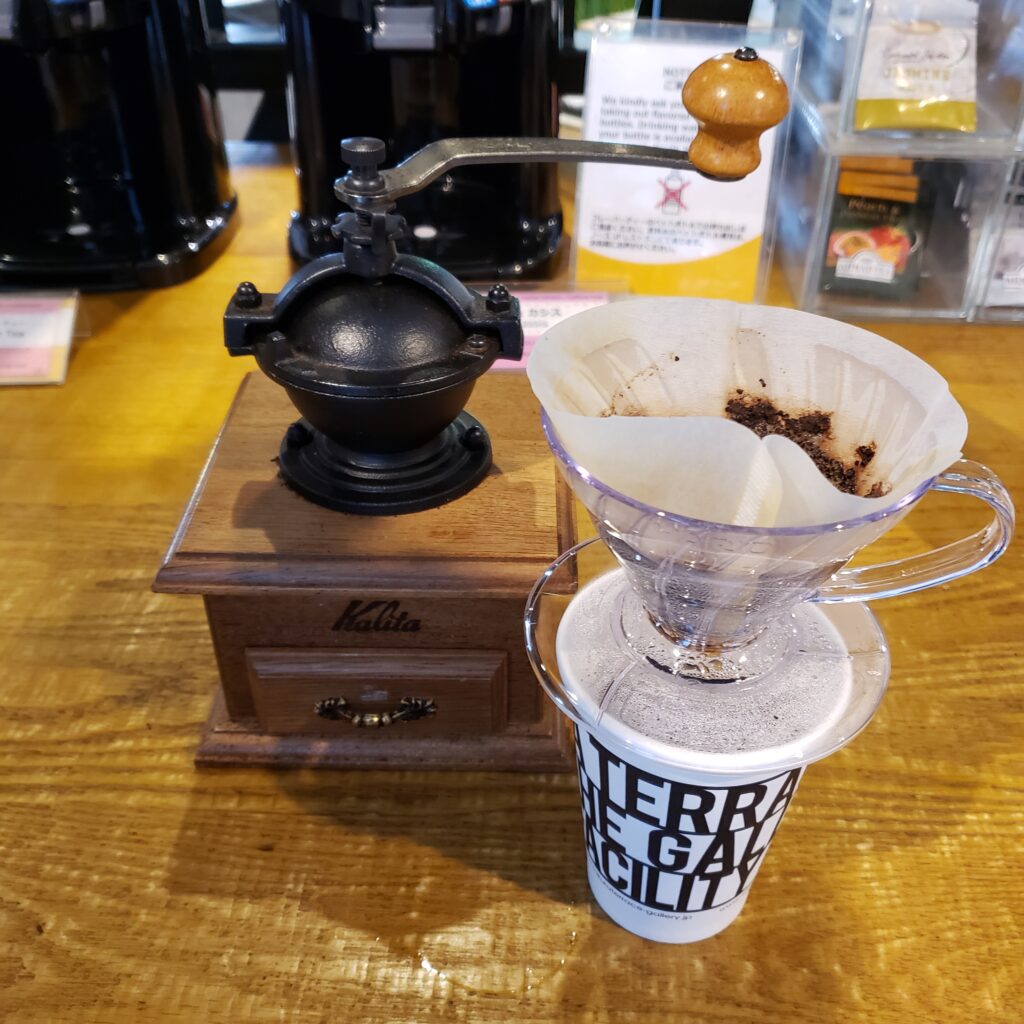 コーヒーは豆から自分で挽いて飲めるので、本格的です!